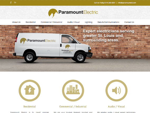 Paramount electric is a new full service electrician service company in St. Louis, Missouri. When this company first started we helped them with some branding including design of their logo and business cards – the basic essentials. Once their business to root, Paramount Electric knew they needed a stunning professional website to match the quality of their electrical work. We worked with their budget to create stunning visuals and content with the ability to add lots of additional search engine optimized content pages as their marketing budget grows. Their website is currently in phase one of an exciting multi-phase process to create the most cutting-edge website the electrical service industry has ever seen.
